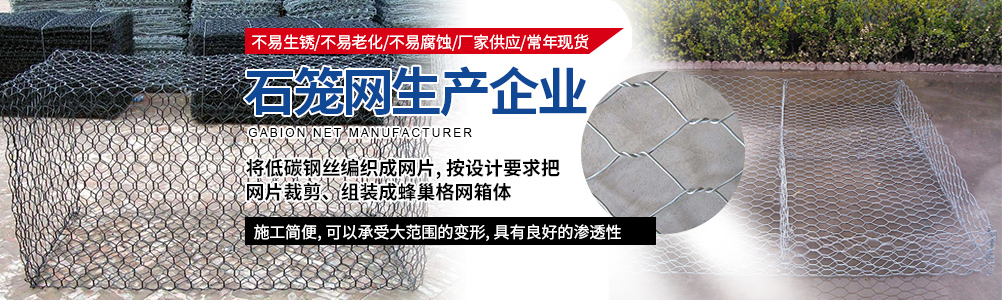 本公司主要生產:石籠網格賓網、重型六角網、鍍高爾凡格賓擋墻、雷諾護墊綠濱墊固濱籠、耐特籠、鉛絲石籠、格賓石籠、電焊石籠網、鍍鋅石籠網、河道石籠網、包塑石籠網、勾花網、高爾凡石籠網、三擰石籠網、五擰石籠網等,可用于保護和支持河道、海堤、山坡、路橋、水庫及其他土木工程, 是防洪固堤工程的上好材料。以可靠的質量,滿意的售后服務深受新老客戶的好評。